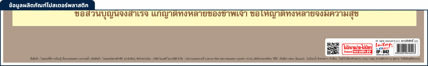 โปสเตอร์ศาสนา บทแผ่เมตตา บทกรวดน้ำ EP-042 EQ-042 พิมพ์ออฟเซ็ท บนพลาสติกพีพี และ กระดาษอาร์ตมัน ข้อความบทแผ่เมตตา และ คำแปล ภาพพิมพ์คมชัด สบายตา