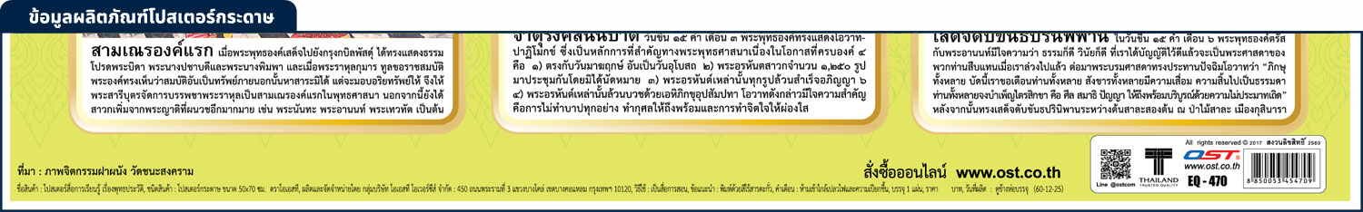 โปสเตอร์ความรู้ พุทธประวัติ EP-470 EQ-470 พิมพ์ออฟเซ็ท บนพลาสติกพีพี และ กระดาษอาร์ตมัน ภาพ และ ข้อความ บทคัดย่อบรรยายเรื่องพุทธประวัติ ภาพพิมพ์ และ ข้อความ คมชัด ชัดเจน