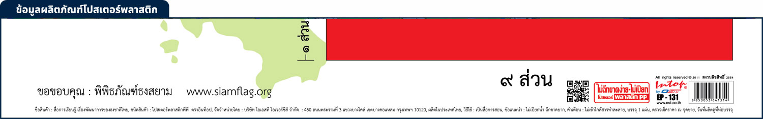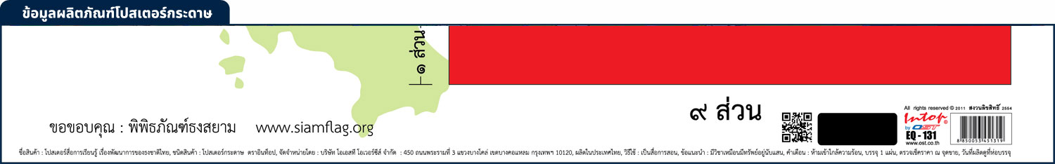 โปสเตอร์ความรู้ พัฒนาการของธงชาติไทย EP-131 EQ-131 พิมพ์ออฟเซ็ท บนพลาสติกพีพี และ กระดาษอาร์ตมัน ภาพและข้อมูลการพัฒนาการของธงชาติไทย ภาพพิมพ์ และ ข้อความ คมชัด ชัดเจน