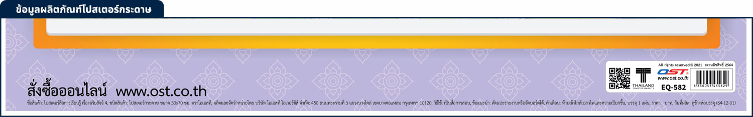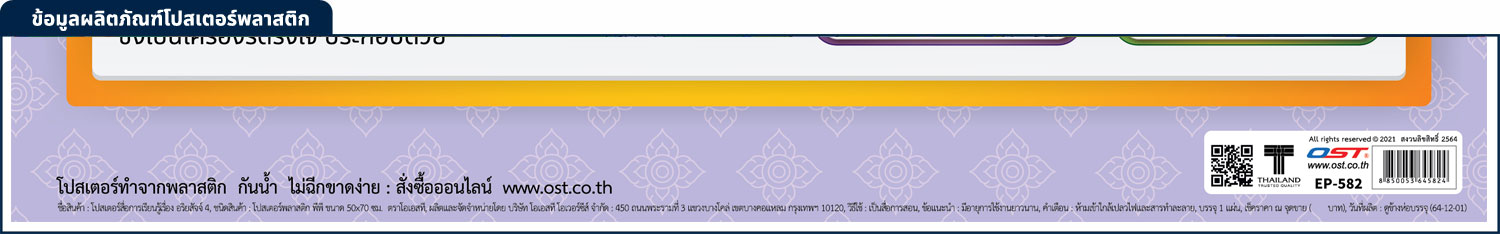 โปสเตอร์ความรู้ อริยสัจจ์ 4 EP-582 EQ-582 พิมพ์ออฟเซ็ท บนพลาสติกพีพี และ กระดาษอาร์ตมัน ภาพ และ ข้อความอธิบายถึง อริยสัจจ์ 4 ความจริงอันประเสริฐ ได้แก่ ทุกข์ สมุทัย นิโรธ และ มรรค