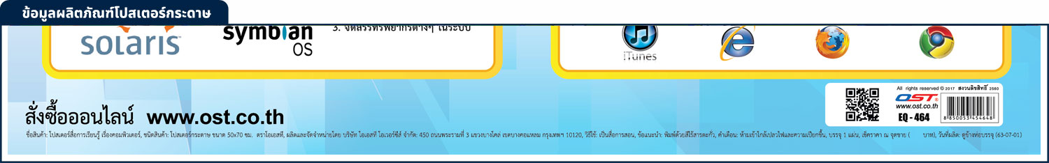 โปสเตอร์ความรู้ คอมพิวเตอร์ EP-464 EQ-464 พิมพ์ออฟเซ็ท บนพลาสติกพีพี และ กระดาษอาร์ตมัน ภาพส่วนประกอบ และ หน้าที่การทำงานของ ชิ้นส่วนต่างๆ ใน เครื่องคอมพิวเตอร์ ภาพพิมพ์ และ ข้อความ คมชัด ชัดเจน