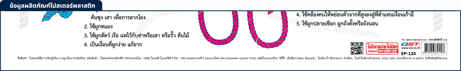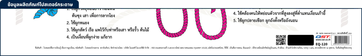 โปสเตอร์ความรู้ วิธีการผูกเงื่อน EP-120 EQ-120 พิมพ์ออฟเซ็ท บนพลาสติกพีพี และ กระดาษอาร์ตมัน ภาพ และ วิธีการผูกเงื่อน แบบต่าง ที่ มีประโยชน์ ภาพพิมพ์ และ ข้อความ คมชัด ชัดเจน