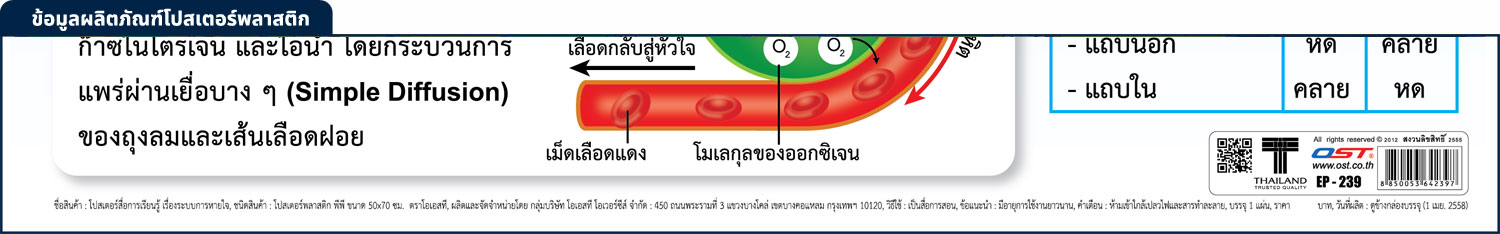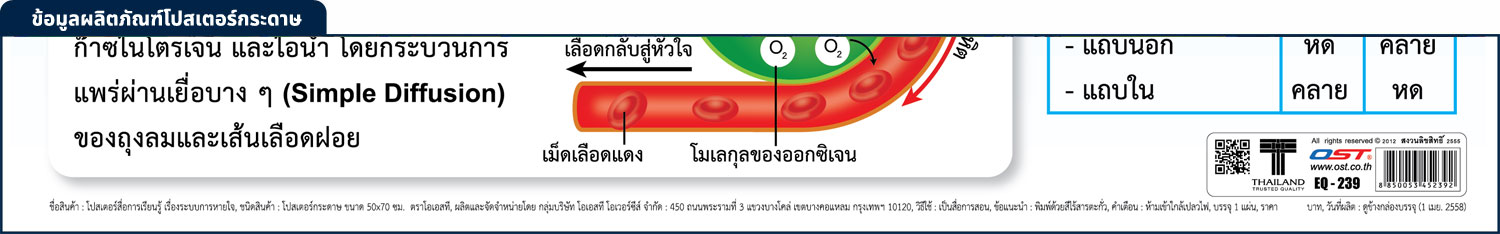 โปสเตอร์ความรู้ ระบบการหายใจ EP-239 EQ-239 พิมพ์ออฟเซ็ท บนพลาสติกพีพี และ กระดาษอาร์ตมัน ภาพ และ หน้าที่โดยสรุป ของส่วนต่างๆของระบบการหายใจ มี จมูก คอหอย ปอด หลอดลม กระบังลม ภาพพิมพ์ และ ข้อความ คมชัด ชัดเจน